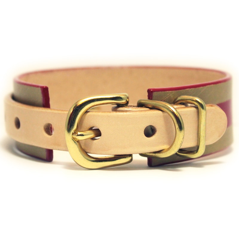 Framer アートなグラフィック本革首輪 にじみ絵リーフ 真鍮無垢金具 サイズSS~L ベルト幅16mm #23490 Framer